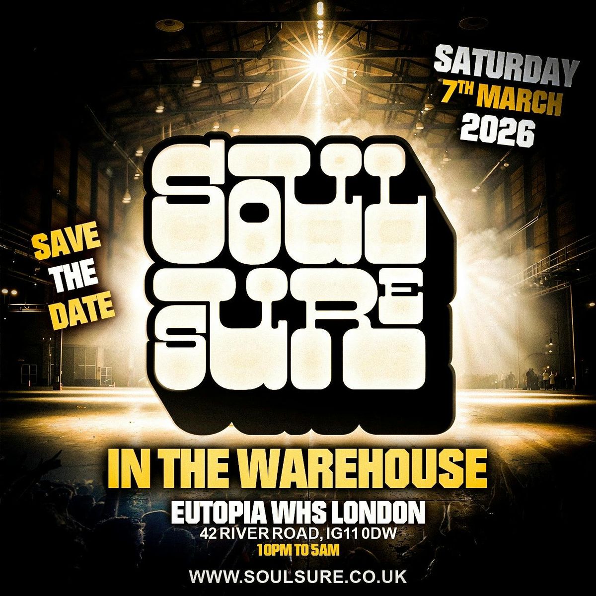 SOUL SURE IS BACK IN THE HOUSE! After a 12 month absence, we are pleased to announce our first event of 2026. SOUL SURE - 'IN THE WAREHOUSE'This event will sell out quickly and once those tickets are gone, they are gone. We have a crazy line up and an even crazier venue! LINE UP WILL BE RELEASED SHORTLY! We can't wait to see you all on the dance floor.