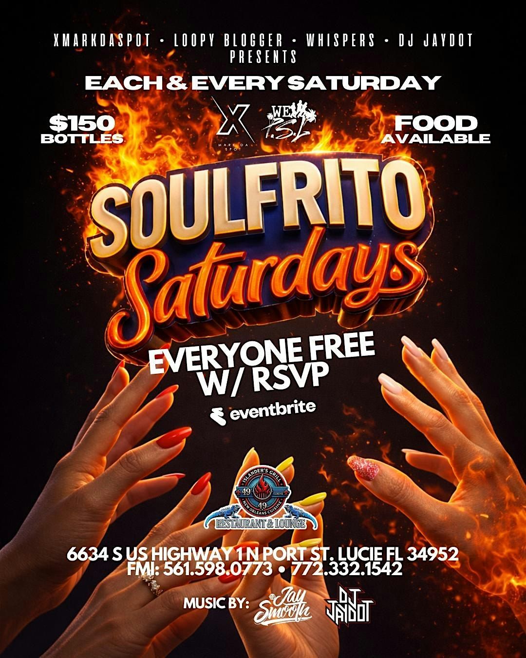 Join us Every Saturday for SoulFrito Saturdays, a new weekly nightlife experience bringing the vibrant energy of Latin, Caribbean, and Hip-Hop culture to Port St. Lucie.
