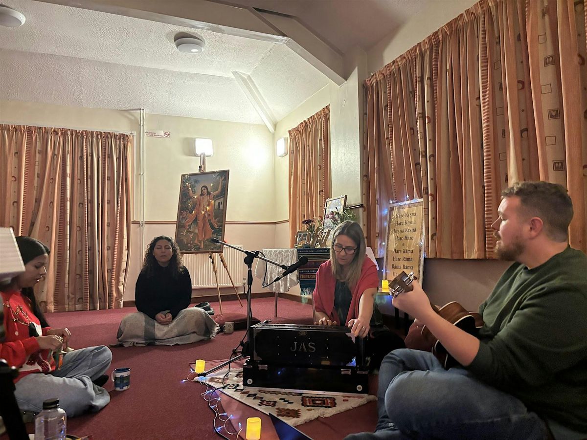 Kirtan is a form of meditation done through call-and-response chanting. One person sings a simple Sanskrit mantra, and everyone else repeats it back. There's usually harmonium, percussion, and sometimes other instruments. It's meditative, communal, and accessible—you don't need to know the language or be able to sing.