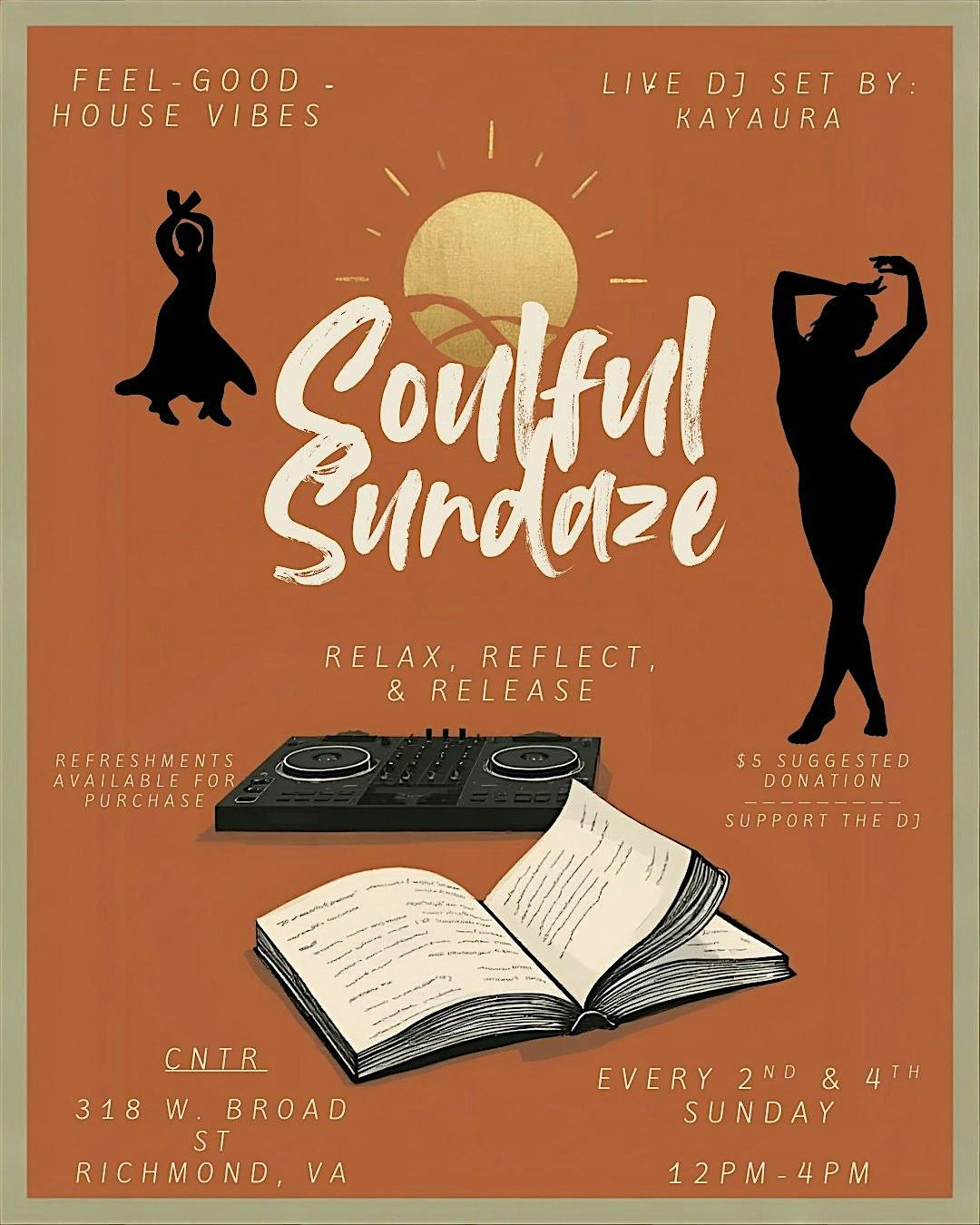 Unwind, vibe, and set your intentions for the week ahead at this Sunday afternoon session every 2nd and 4th Sunday, from 12pm to 4pm. Join me for a soul nourishing mix of feel-good house music, and a cozy space to dance or simply relax…the perfect pre-work week reset!