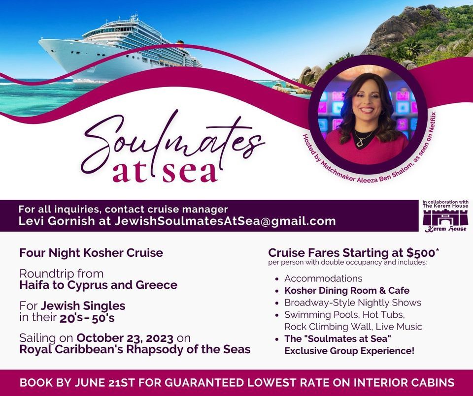 5 Days of WonderJoin Soulmates at Sea and Kerem House for a 5 day kosher cruise!