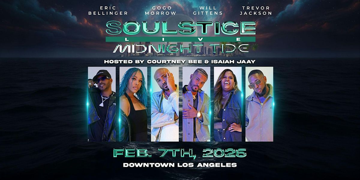 Soulstice Live - Midnight Tide brings together some of today’s most dynamic artists for a one-of-a-kind immersive music experience featuring Will Gittens, Eric Bellinger, Trevor Jackson, and GoGo Morrow, with hosting by Isaiah Jaay and Courtney Bee, and sounds curated by Uncle Kizzy, DJ Shai and more.