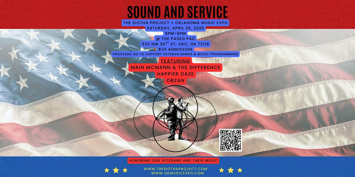 Sound and Service is a concert with purpose happening on Saturday, April 25, 2026 from 5pm-8pm at The Paseo Pad, 533 NW 30th St, OKC, OK 73118. Admission is $20 per person and limited to 50 attendees. T-Shirt pre-orders are open now. You will want to wear them all around town. The design is too cool. 😎 Proceeds will go toward supporting veteran musicians and music programming. Tickets and shirts can be ordered at the link below.
