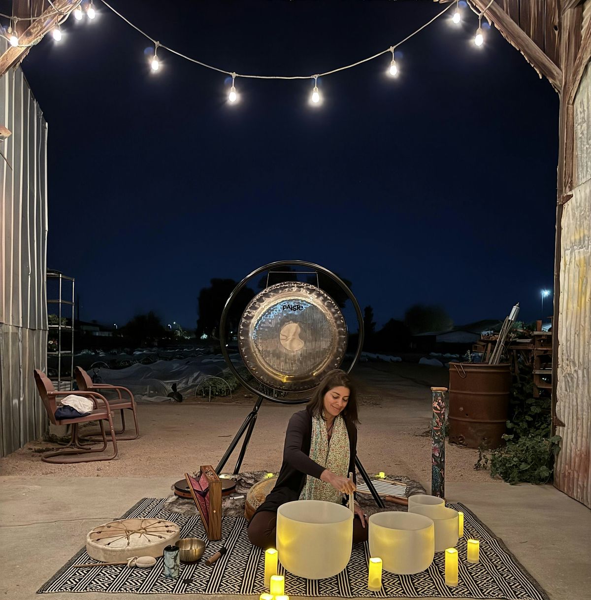 Join Lucy for a grounding Sound Bath at the beautiful Greenhouse Gardens, Urban Farm in Chandler, AZ.