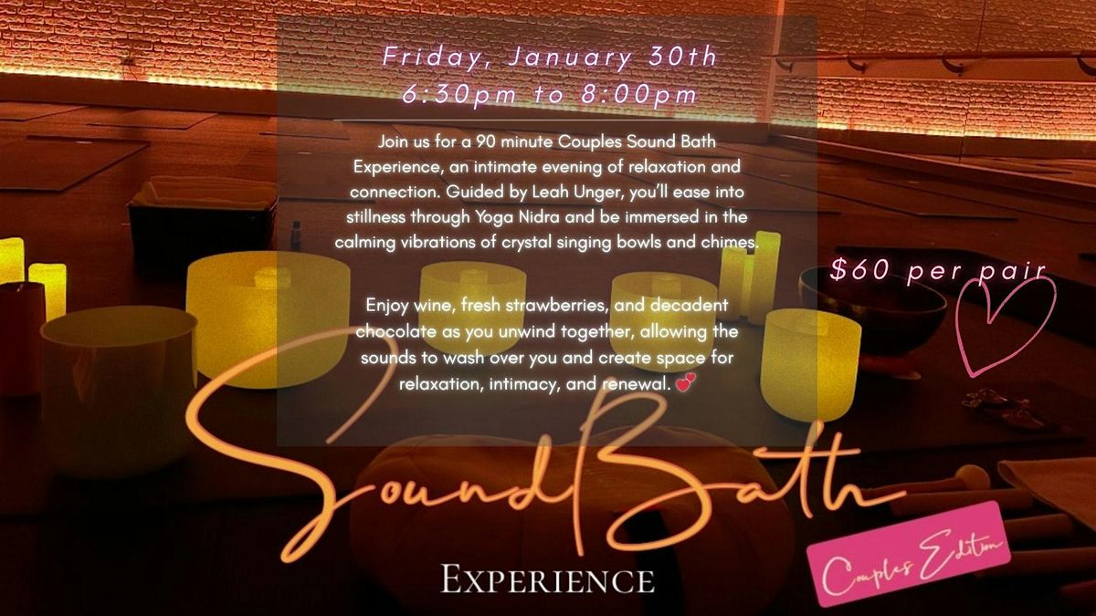 Celebrate Valentine’s Day with your special someone in a deeply relaxing and heart opening Couples Sound Bath Experience. Step away from the noise of everyday life and immerse yourselves in soothing sound frequencies designed to help you unwind, reconnect, and simply be together.