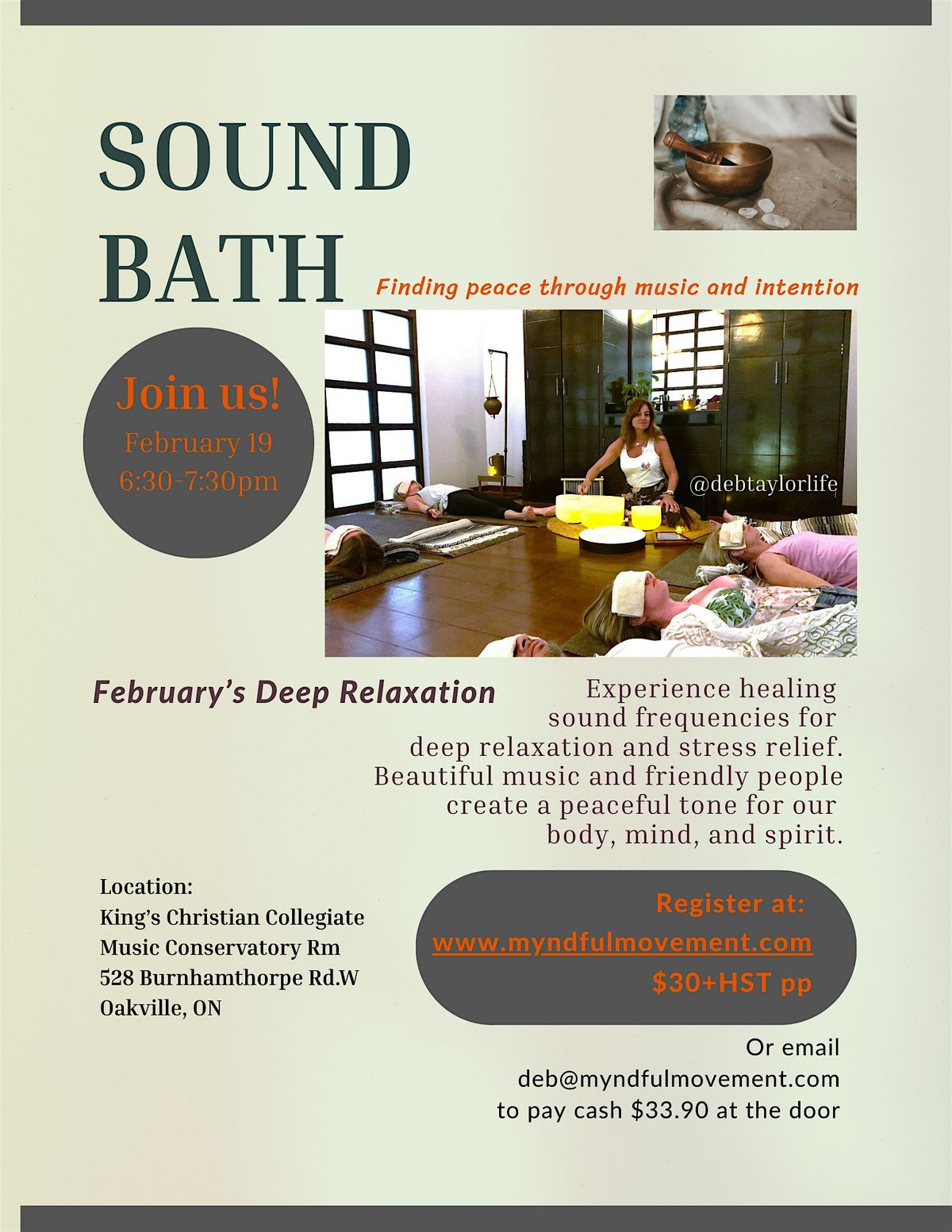 Based in Oakville, Deb Taylor is an international sound healer and wellness practitioner who blends sound therapy, meditation, music, and yoga to create deeply restorative experiences. Her sound baths are thoughtful, immersive journeys that support relaxation, clarity, and inner balance.
