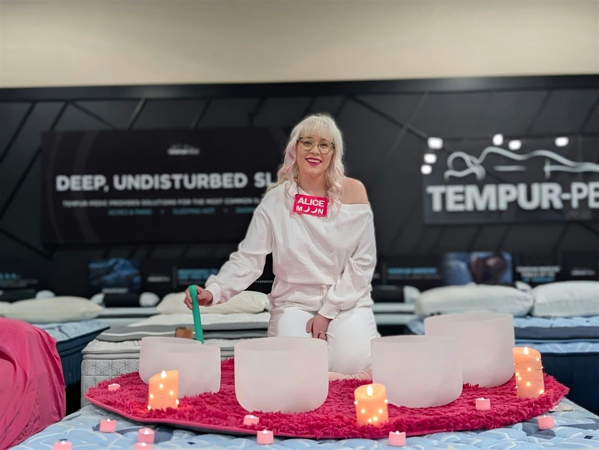 Join us for a deeply restorative evening at this magical mattress sound bath hosted by certified sound practitioner, Alice Moon, of Moon Soul Sound Baths. Nestled amongst the coziest mattresses in town, you’ll drift into bliss as the soothing vibrations of meditative instruments wash over you.