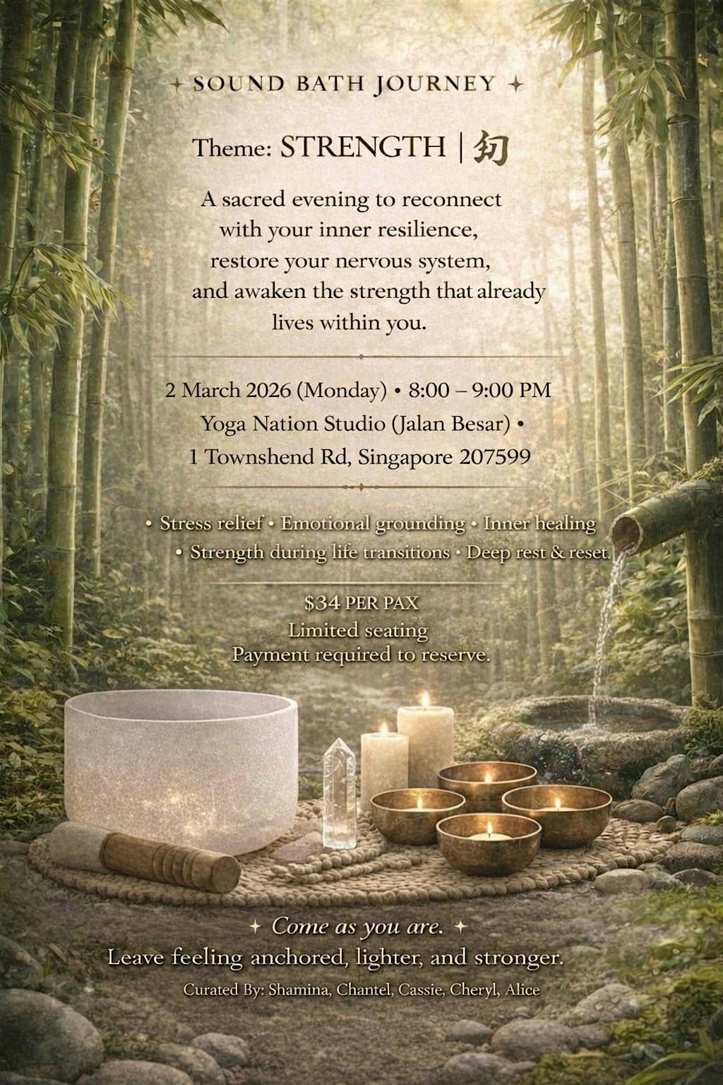 Get ready to unwind and recharge at our Sound Bath Journey - The Sound of Strength! Join us in person for a relaxing experience where soothing sounds and vibrations will help you tap into your inner power. Perfect for anyone looking to de-stress and feel rejuvenated. Dress in your comfy clothes, an open mind, and let's dive into a peaceful, healing soundscape together!