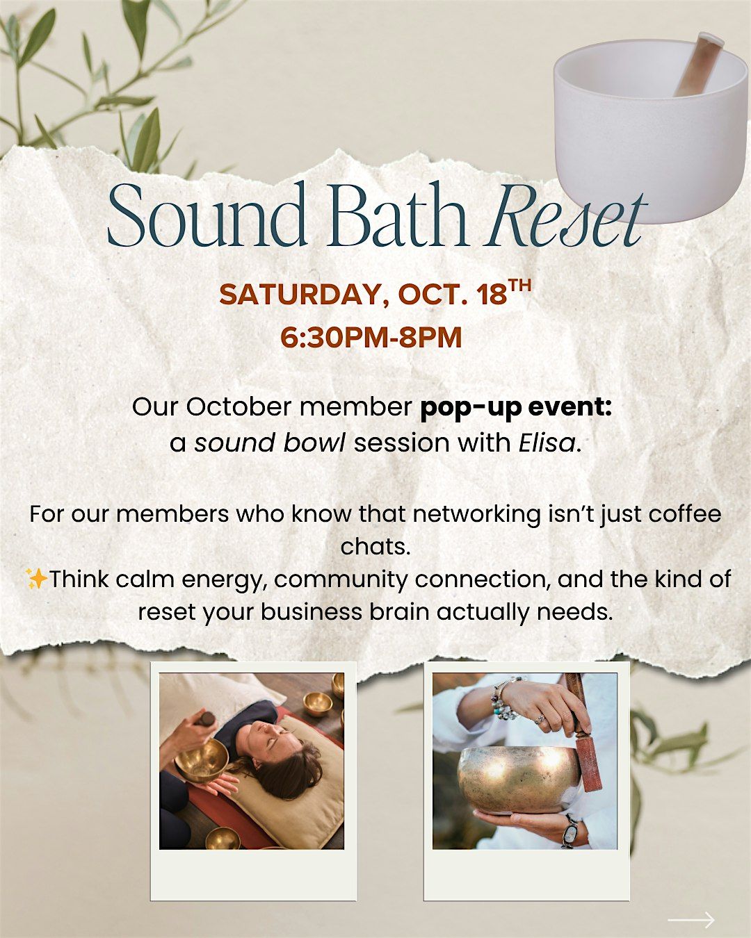 Welcome to our Sound Bath Reset event! Join us at Social Arch Studio for an immersive experience of sound healing and relaxation. Let the soothing sounds wash over you, melting away stress and tension. This in-person event is the perfect opportunity to unwind and reset your mind and body. Don't miss out on this unique chance to rejuvenate your spirit in a welcoming and tranquil environment. Come and immerse yourself in the healing power of sound!