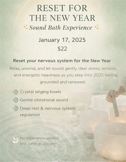 JaeAna will guide a transformational journey through sound using crystal bowls, chimes, and vibrational healing tools, while Maria channels the sacred energy of Group Reiki to elevate your frequency and help you release deeply held tension, emotions, and energetic blocks.