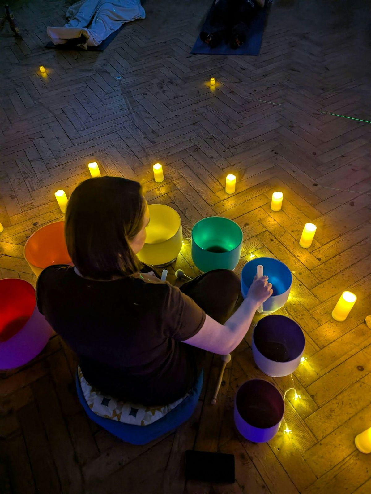The session starts with a brief introduction to help you settle in. Then, you’ll lie back and get comfortable while I guide you through a short meditation with breathwork to relax. The sounds will gradually build into a relaxing, immersive experience designed to ease tension and calm the mind. The session ends with a short grounding meditation and stillness to help you transition back into your day.