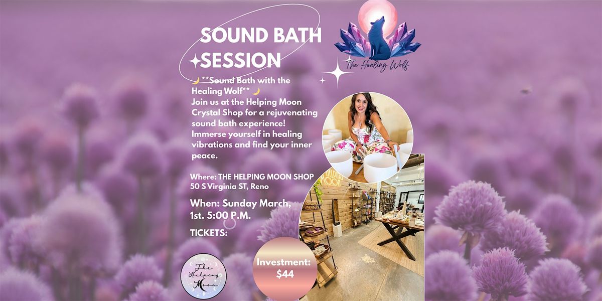 Join us for a unique and rejuvenating experience at The Helping Moon, hosted by The Healing Wolf! Immerse yourself in the soothing ambiance of our crystal shop as we present a **Sound Bath** focused on ancient Native sounds designed to promote relaxation and solitude.