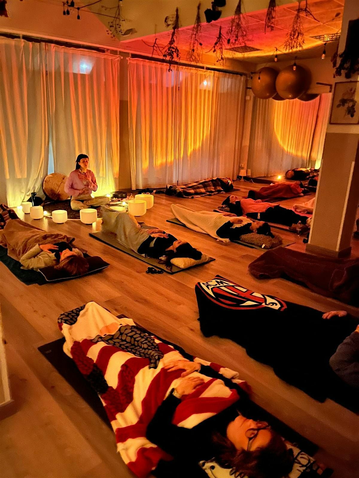 Bagno di suono con campane di cristallo e strumenti nativi