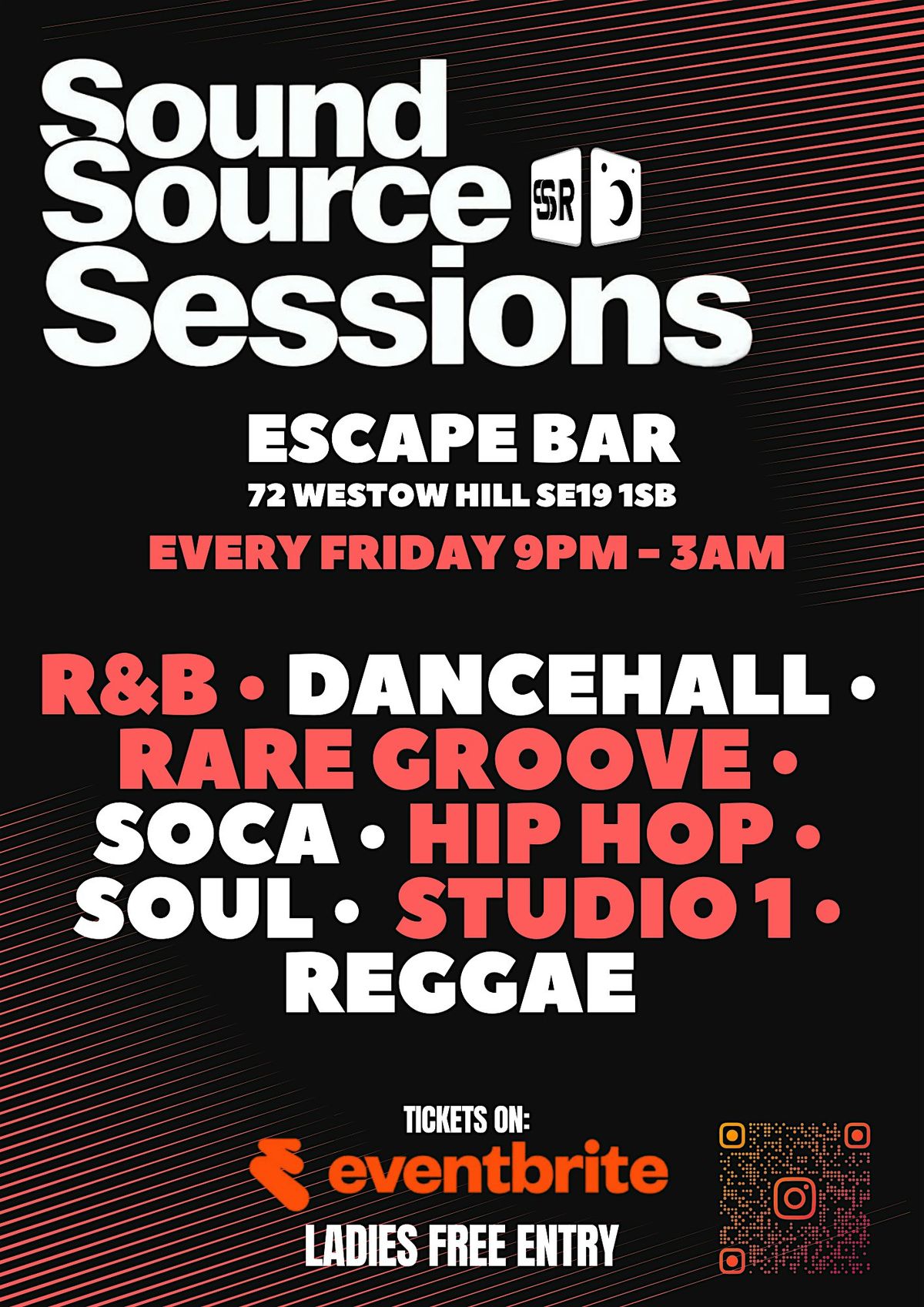 Sound Source Session every Friday @ Escape Bar (72 Westow Hill SE19 1SB). Playing the best in R&B - Dancehall - Rare groove - Soca and more