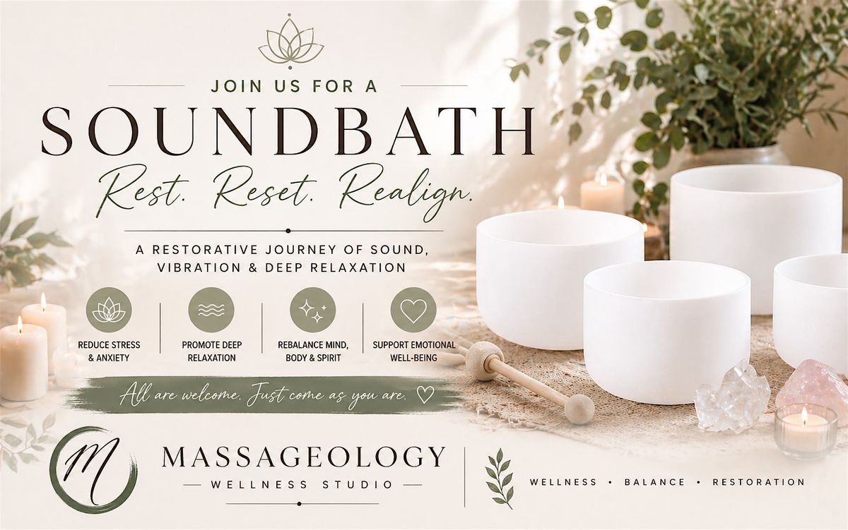 Experience a restorative journey of sound, vibration, and deep relaxation at Massageology Wellness Studio.This intimate Soundbath session is designed to guide you into a state of stillness, helping to release tension, calm the nervous system, and create space for clarity and balance.