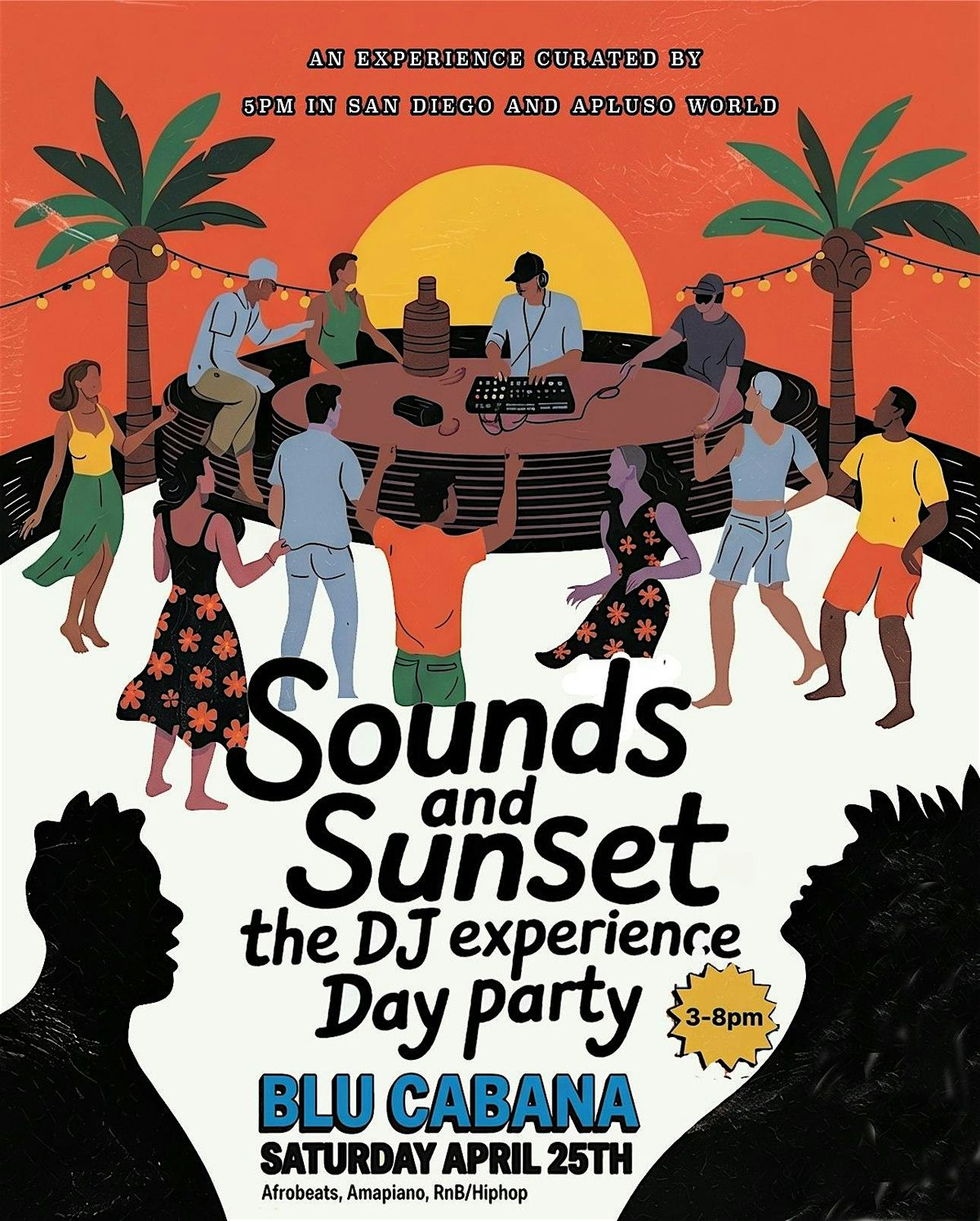 Sounds & Sunset is not just a party β itβs a day party centered around the DJ, the music, and the energy of the people. From Afrobeats to Amapiano, Hip-Hop to global sounds, each DJ set is designed to take you on a journey as the sun sets over the city.