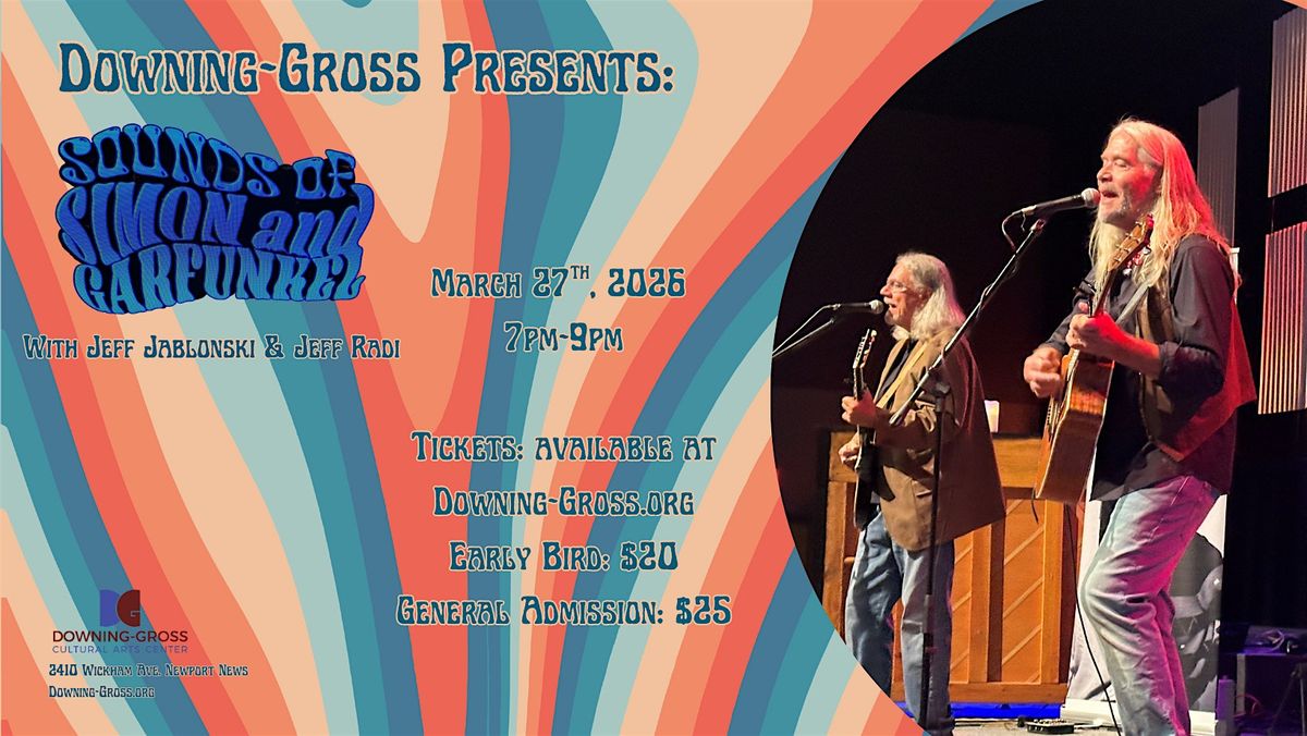 Sounds of Simon and Garfunkel is a truly authentic tribute to the best-selling duo of all time. With accurate musical renditions and precise vocal harmonies, Jeff Jablonski and Jeff Radi take the audience on a musical journey performing Simon and Garfunkel’s celebrated hits, including Paul Simon’s solo career. Don’t miss this unforgettable stage performance that is sure to transport you to a simpler place in time, where heartfelt lyrics harmonize with the emotional music of this beloved duo. Jablonski and Radi recreate their magical stage performance, as they subtly bridge the gap from then and now, with their own personal dynamic and passion for music.