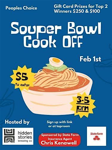 On February 1st, 2026 Hidden Stories Brewing Company is hosting a soup cook-off event at their Selinsgrove Taproom located at 6 University Avenue in Selinsgrove, sponsored by State Farm Agent Chris Kenawell. For a $5 entry fee, soup chefs can enter their best soup offering to compete for the People's Choice $250 first and $100 second place gift card prizes. Tasting and voting is free and open to the public from 3PM to 5PM and winners will be announced the same day at 6PM.