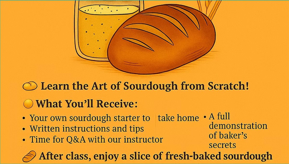 🥖 After class, enjoy a slice of fresh-baked sourdough made from the exact recipe you’ll be learning.