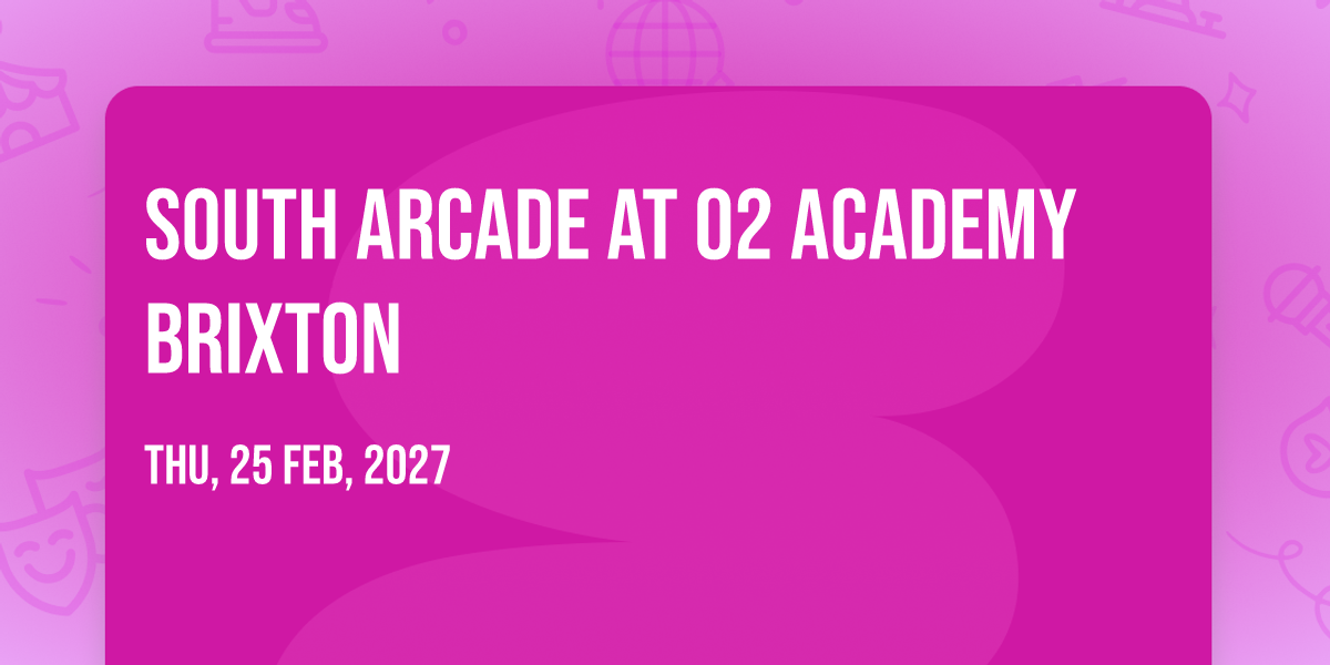 ✨ Enter a world of endless possibilities at South Arcade at O2 Academy Brixton, where every moment tells a story! 🏛️ The stunning O2 Academy Brixton in vibrant London, EN transforms into a realm of wonder on February 25th, 2027 at 07:00 PM. 🌟 They have crafted an experience that goes beyond the ordinary, combining elements of surprise, delight, and pure entertainment. Every detail has been thoughtfully considered to ensure your journey with us is nothing short of extraordinary. 🎯 Join fellow adventure seekers and memory makers in this celebration of imagination and innovation. 🎊 Reserve your spot today and be part of something truly special!