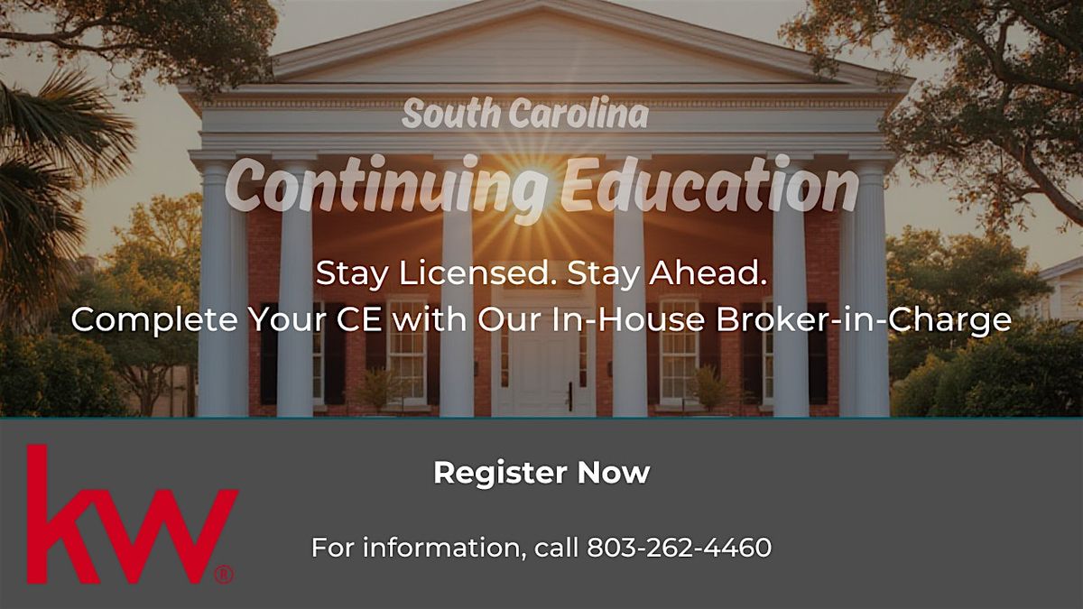 We will be hosting a South Carolina Continuing Education course over three days, totaling 10 credit hours, to help real estate professionals meet their 2026 CE requirements. The classes will be held at Keller Williams and will be instructed by Lonnie Daniels, Broker-in-Charge.
