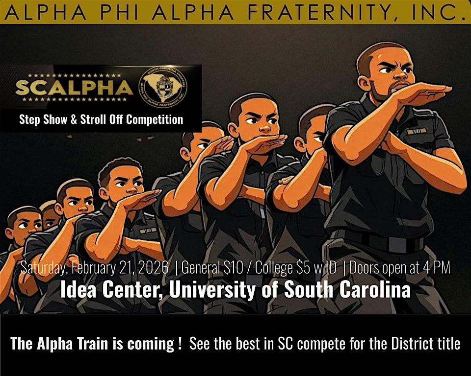 We are proud to invite you to an electrifying SCALPHA Step Show and Stroll-Off Competition, a celebration of rhythm, precision, creativity and the unmistakable legacy of Alpha men moving in unity. The event will take place on Saturday, February 21, at 4 p.m. at the IDEA Center (737 Gadsden Street, Columbia, SC 29201). The event also serves as the kickoff off for our March of Dimes fundraising season. Tickets are $10 (general admission) and $5 (with valid college ID). Click here to purchase tickets.