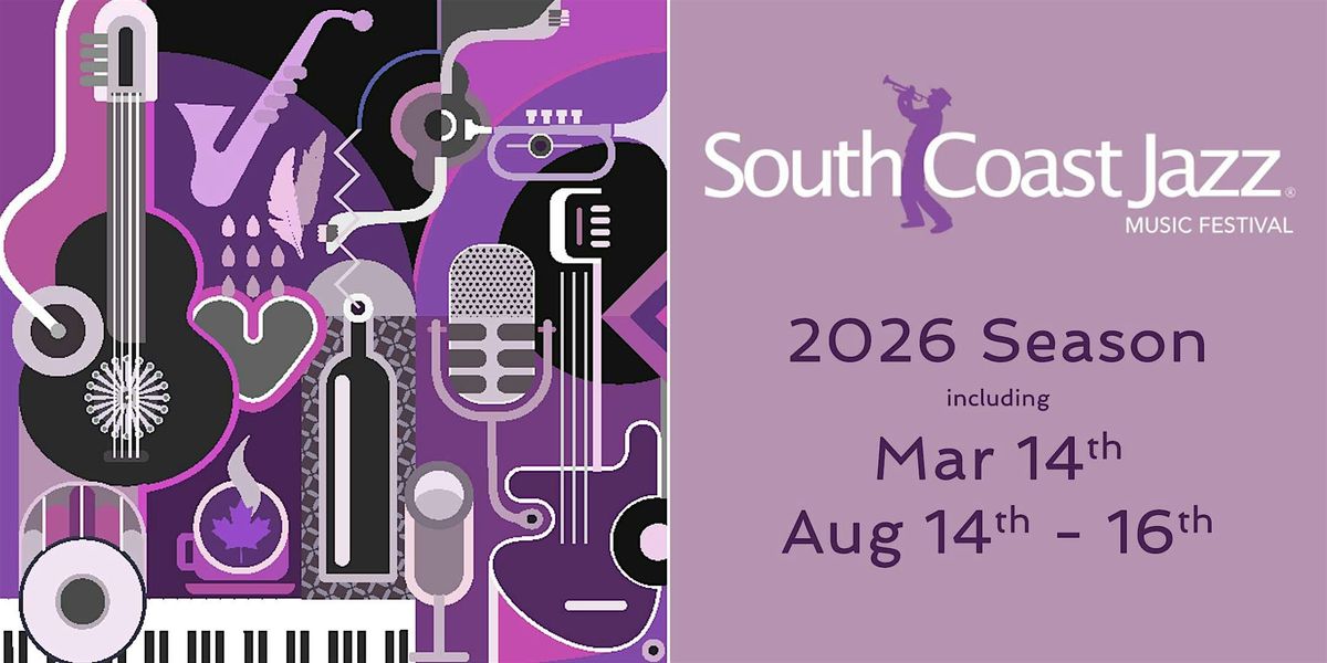 Grab your dancing shoes for South Coast Cultural Society's 2026 season of the 13th annual, South Coast Jazz World Music Festival ! The people who brought you Lighthouse/David Sanborn/Holly Cole/Jully Black, Powder Blues Band, Liona Boyd and hundreds more at South Coast Jazz and World Music Festival. On sale now: