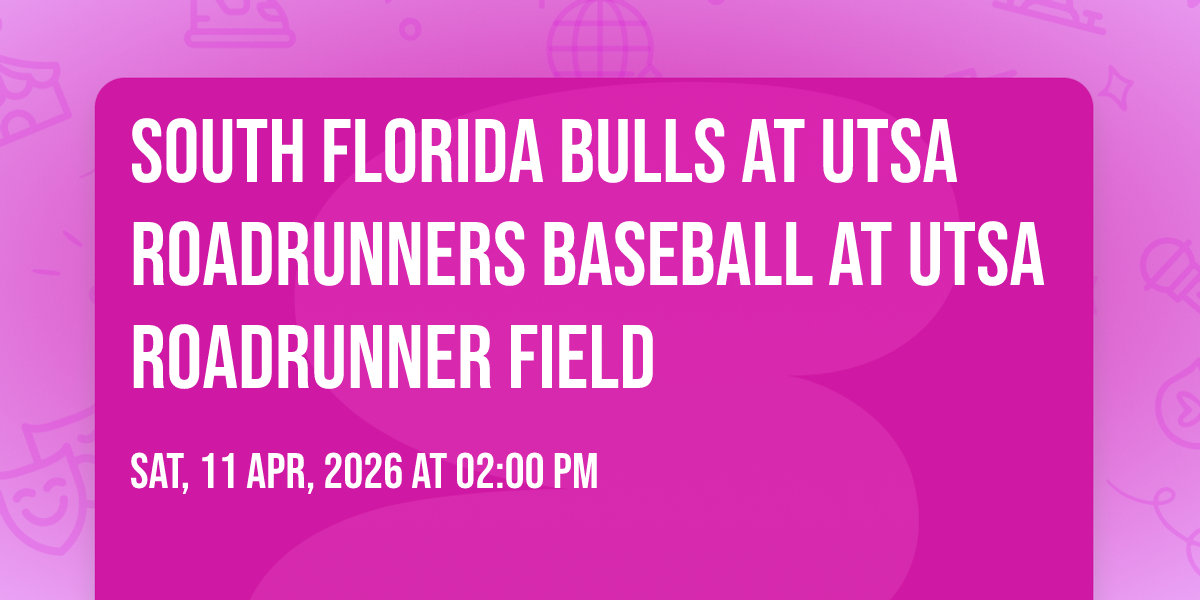 🎉 Welcome to South Florida Bulls at UTSA Roadrunners Baseball at UTSA Roadrunner Field, where the impossible becomes possible and dreams take flight! 🏛️ Join us at UTSA Roadrunner Field in the heart of San Antonio, TX for an event that will redefine your expectations. 📅 On April 12th, 2026 at 01:00 PM, witness the transformation of space and time into something truly magical. ✨ It's a curated experience combining the best of innovation, entertainment, and community spirit, creating moments that will be remembered for years to come. Whether you're a first-time visitor or a seasoned enthusiast, prepare to be amazed. 🎊 Book now to ensure your place in this unforgettable experience!