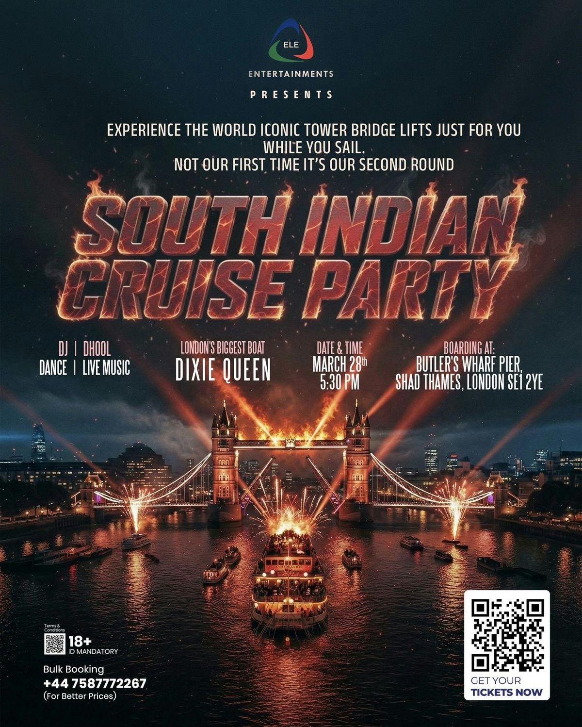 đĽđ˘ SOUTH INDIAN CRUISE PARTY đ˘đĽLondon⌠weâre doing it AGAIN â and this time itâs BIGGER, LOUDER & CRAZIER! đâ¨Watch the iconic Tower Bridge lift as we sail through the Thames in style. A once-in-a-lifetime party moment you donât want to miss!