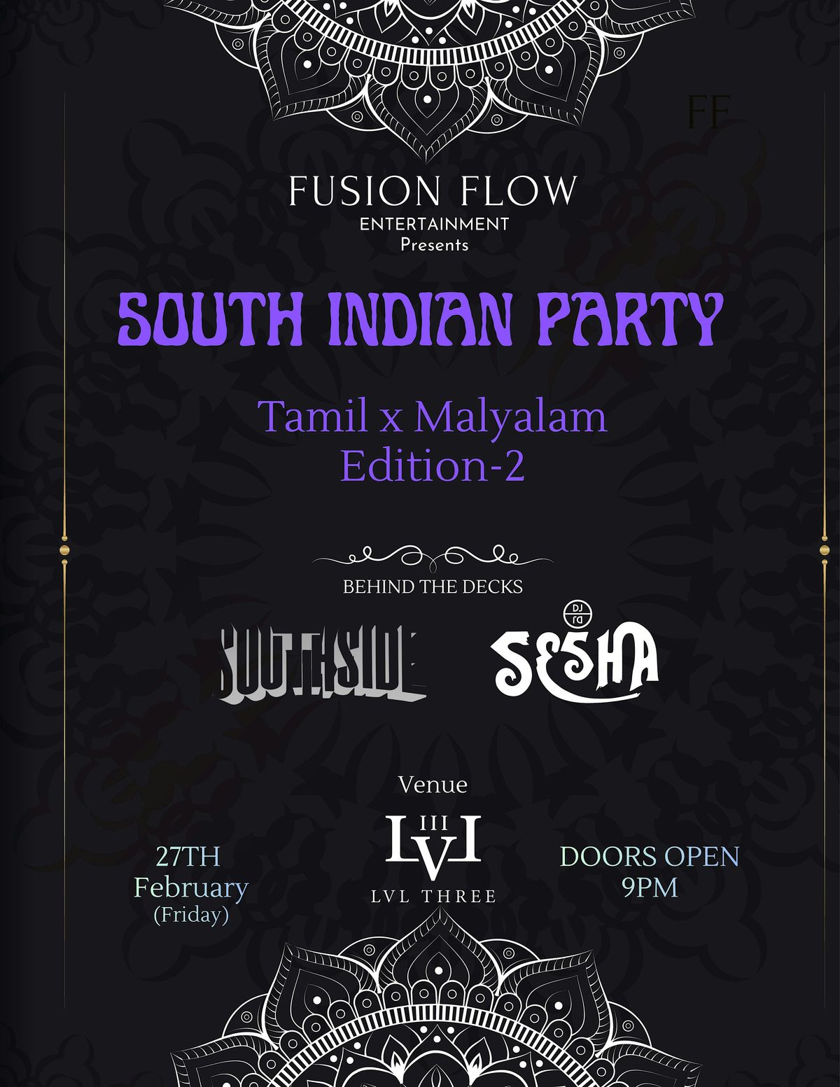 Fusion Flow Entertainment is thrilled to invite you to our extravagant event, "South Indian Party: Tamil x Malayalam Edition-2”! This is not just an event; it’s a cultural celebration bringing together the vibrant rhythms, and traditions of South India.