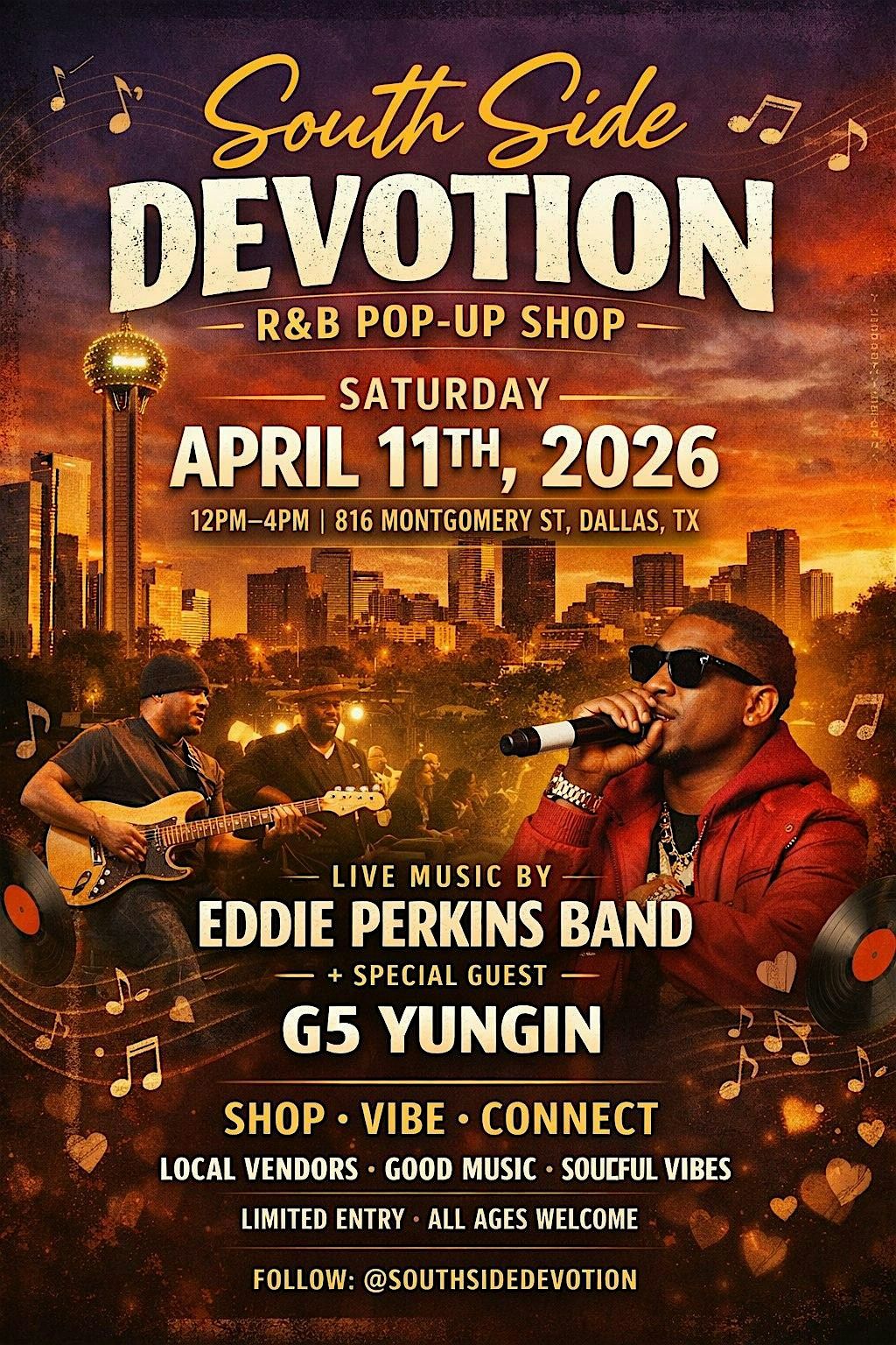 Come vibe with us at the South Side Devotion RnB Pop-Up Shop! It’s an in-person event all about good tunes, cool finds, and great people. Whether you're into catching fresh RnB beats or hunting for unique pop-up treasures, this is the spot to be. Don't miss out on the chill atmosphere and dope energy. Swing by, bring your friends, and let's make memories!