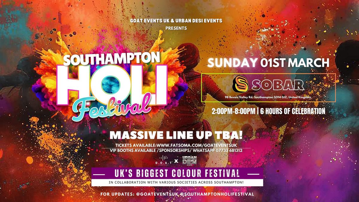 🎉 SOUTHAMPTON UK'S BIGGEST HOLI COLOUR FESTIVAL 2026 🎉Southampton’s largest and most vibrant Holi Colours Festival returns in 2026, promising an unforgettable celebration of colour, culture, and community❤️💛💚💙💜🌟✨