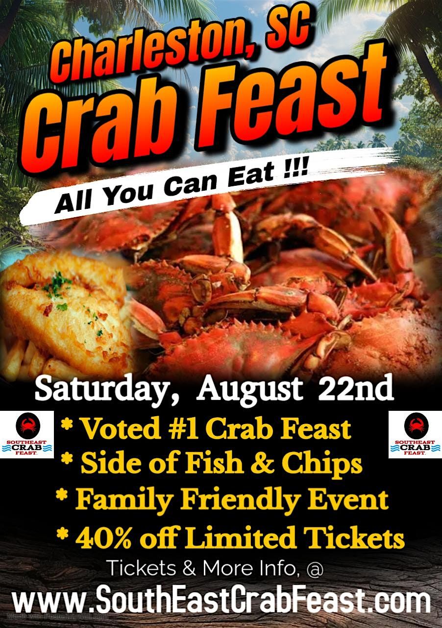 ALL YOU CAN EAT BLUE CRABS!!!! Please join us for the SouthEast Crab Feast event in Charleston, SC on Saturday, August 22nd. This event offers the Low Country Coastal Heritage of outdoor cooking of fresh seafood. This highly anticipated event will offer ALL YOU CAN EAT fresh Blue Crabs, one side of Fish & Chips, Music and a Family Friendly Environment for the entire family.
