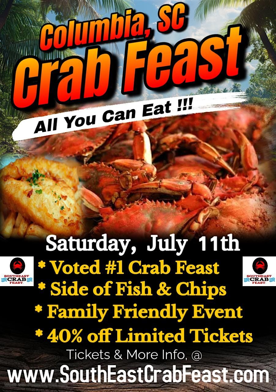 ALL YOU CAN EAT BLUE CRABS!!!! Please join us for the SouthEast Crab Feast event in Columbia, SC on Saturday, July 11th. This event offers the Low Country Coastal Heritage of outdoor cooking of fresh seafood. This highly anticipated event will offer ALL YOU CAN EAT fresh Blue Crabs, one side of Fish & Chips, Music and a Family Friendly Environment for the entire family.