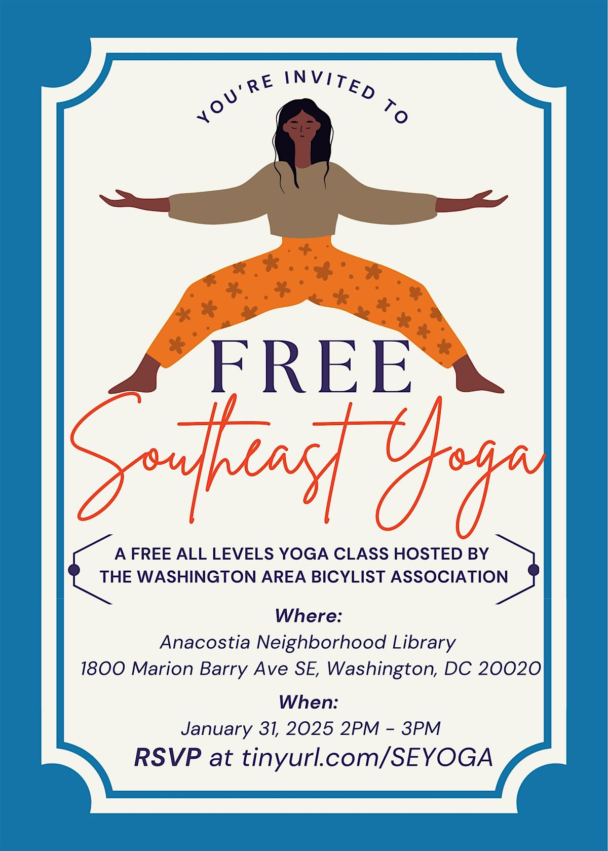 Gather your friends, and join the Washington Area Bicyclist Association for the final session of our spring Southeast Yoga series. This is an all levels class perfect for first timers and advanced yogis alike.