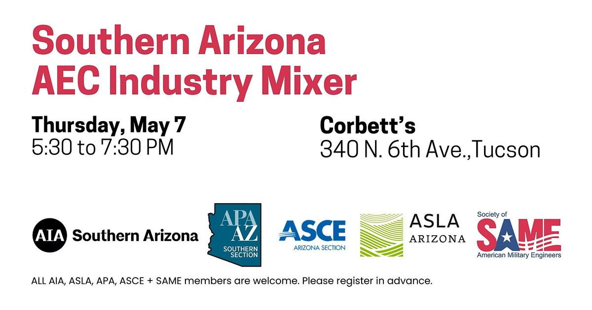 Are you an architect, engineer, contractor, or part of the AEC industry in Tucson? Join us on May 7 at Corbett's in Tucson for an AEC networking event!