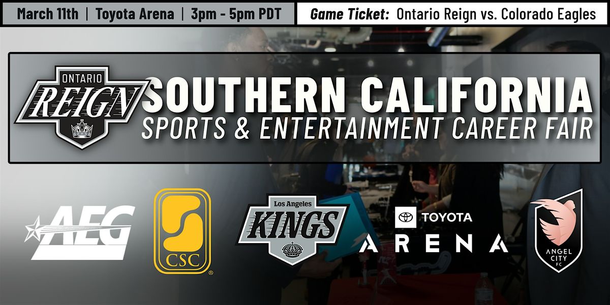 Don’t miss this unique opportunity to meet sports employers from organizations in the Southern California Area looking to meet potentialy fill various intern and entry level positions! All attendees will receive a ticket to see the Ontario Reign take on the Colorado Eagles at 7:00pm.