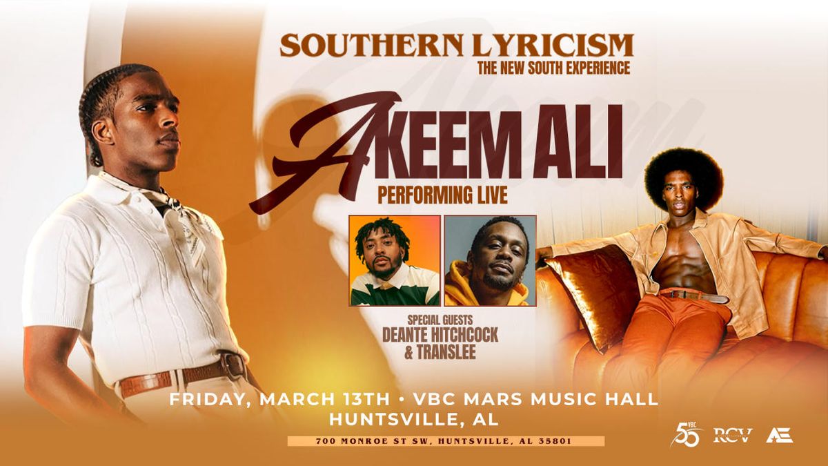 π Welcome to Southern Lyricism: Akeem Ali, where dreams come alive and possibilities are endless! ποΈ Join us at Von Braun Center Mars Music Hall in the heart of Huntsville, AL for an event that defies expectations. π