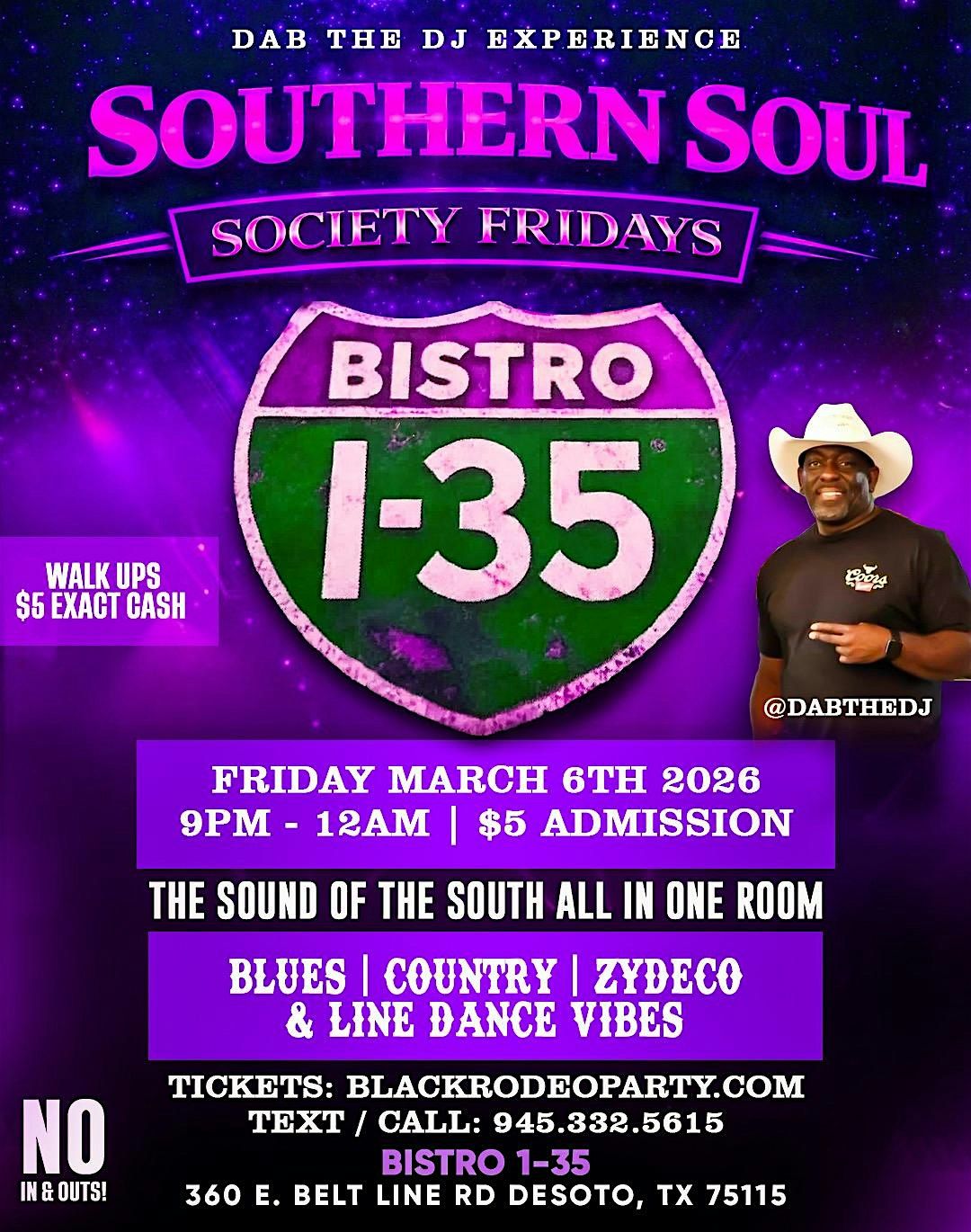 Get ready to vibe with the best Southern Soul tunes every Friday night! Join us in person for an unforgettable evening filled with smooth beats, great company, and good times. Whether you're here to dance or just chill, Southern Soul Society Fridays is the place to be. Don't miss out on the soulful grooves and the warm, friendly atmosphere. See you there!
