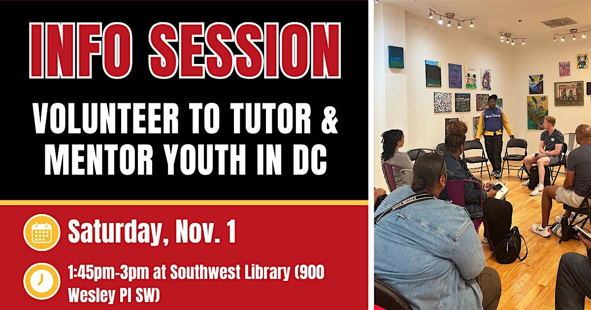 Come to our Info Session, to learn about how YOU can give back, pay it forward, and make a world of difference for DC kids by devoting 1-2 hours a week to serving your community as a mentor, tutor, or coach for elementary, middle, or high school students!