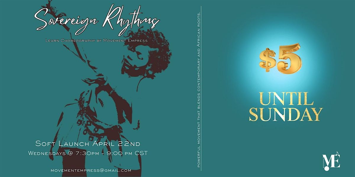 Join the Sovereign Rhythms: Indigenous Afro Contemporary Series and experience powerful choreography led by the Movement Empress. This class blends contemporary dance with indigenous roots, offering a vibrant cultural fusion that helps you connect with your strength and dance with confidence. Explore dynamic rhythms and movements every Wednesday in an energizing and empowering session.