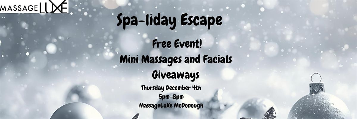 Take a break from the holiday hustle and treat yourself to some well-deserved relaxation at our free Spa-liday Escape event! Enjoy soothing mini massages and refreshing facials in a cozy, festive setting designed to help you unwind and recharge. Whether you're looking to de-stress or just indulge in a little self-care, this is your perfect seasonal escape.