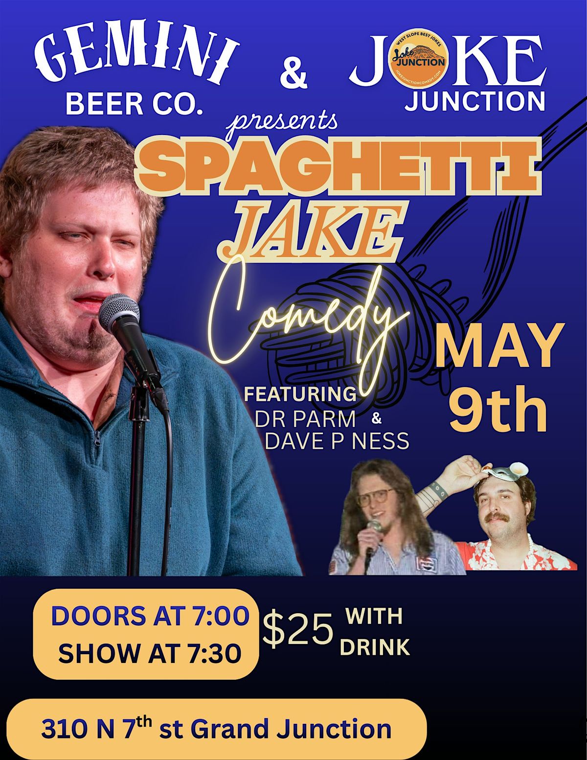 Get ready to laugh your ASS off with Spaghetti Jake’s wild and wacky stand-up FEATURING DR Parm and Dave P Ness