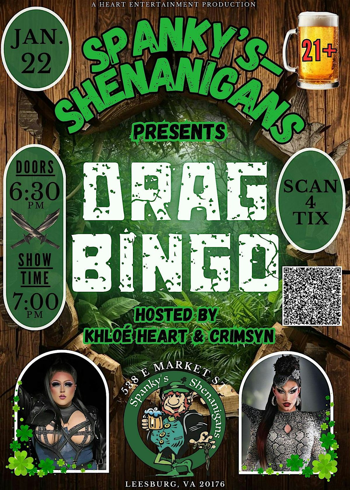 Get ready for a night full of laughs, glam, and wild fun as Khloé Heart and Crimsyn return to Spanky's Shenanigans for an EPIC night of Bingo with a twist! This 21+ event brings your classic bingo game excitement and prizes to a whole new level with energetic drag performances, interactive comedy, and SO much more! Whether you’re a troll-bringing bingo pro, or a diva ready to party, this is the place to be. Bring your friends, enjoy the vibrant vibes, and let’s make some unforgettable memories at Spanky's Shenanigans!