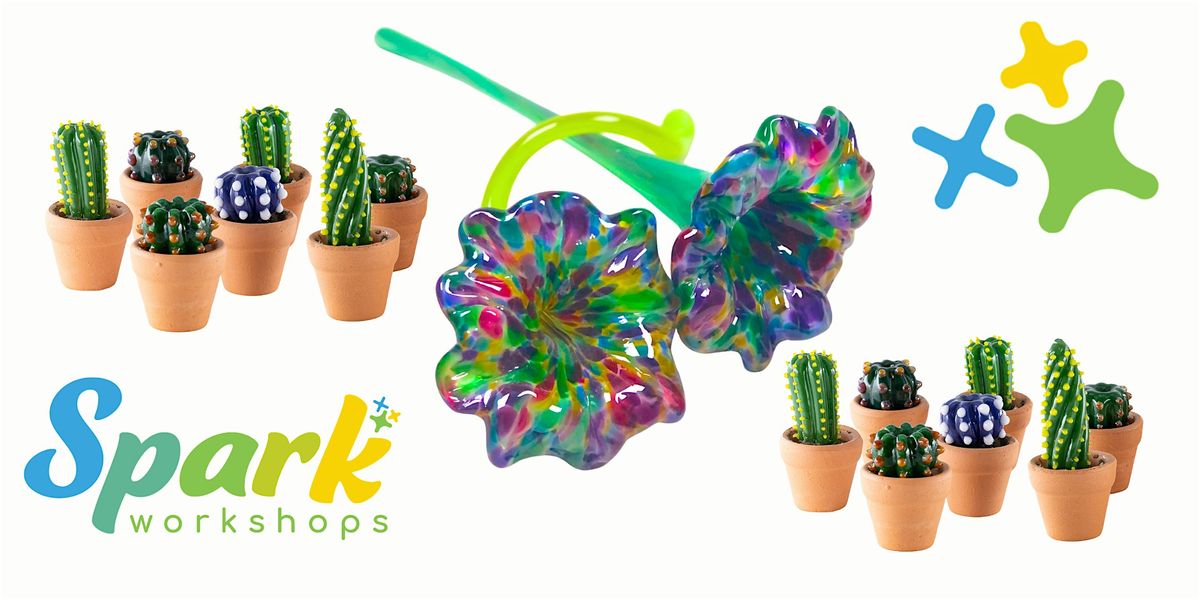 This is the best way to experience the joy of working with glass! Projects vary and may be seasonally themed. You pick your colors and manipulate the glass to create your one-of-a-kind glass treasure.