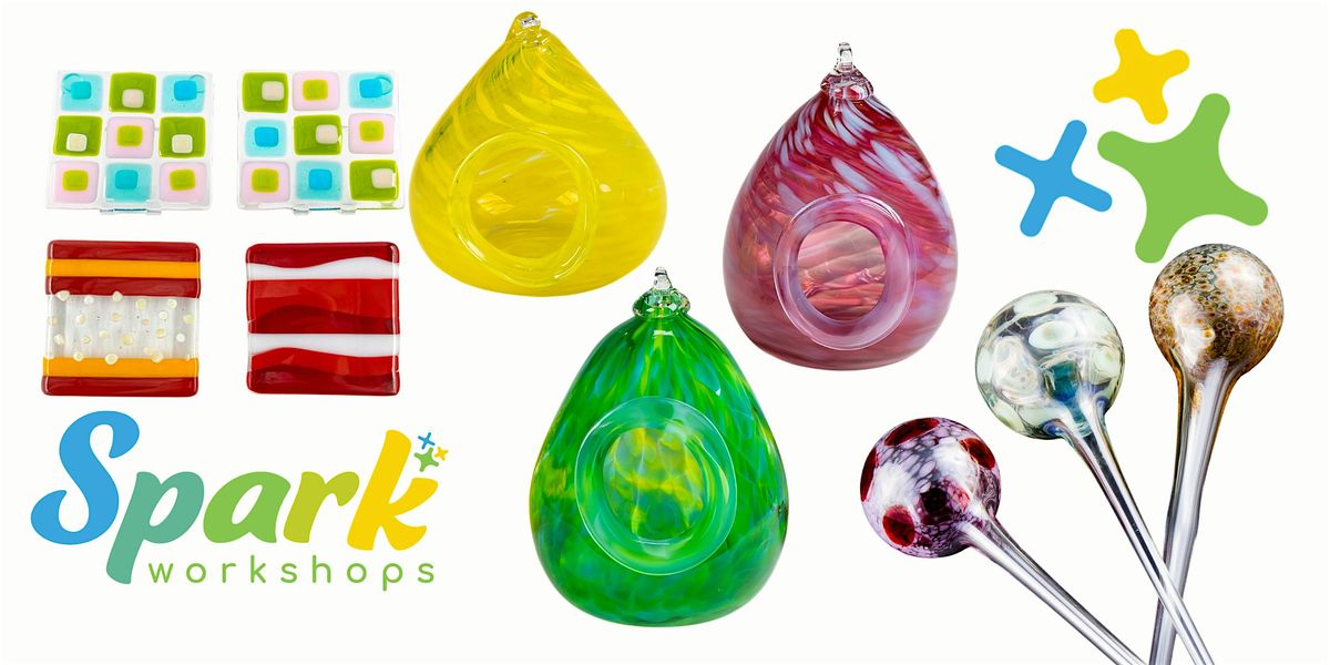 This is the best way to experience the joy of working with glass! Projects vary and may be seasonally themed. You pick your colors and manipulate the glass to create your one-of-a-kind glass treasure.