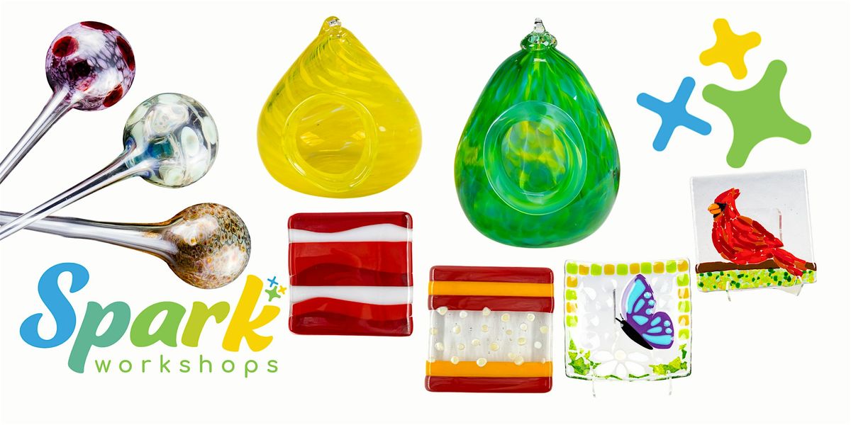 This is the best way to experience the joy of working with glass! Projects vary and may be seasonally themed. You pick your colors and manipulate the glass to create your one-of-a-kind glass treasure.
