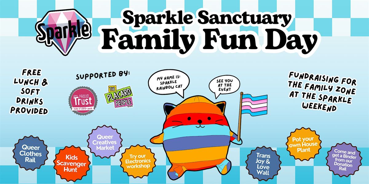This event is free to attend, but all funds go towards the Family & Youth Zone at Sparkle Weekend 2026 (reg. charity number 1134725). In collaboration with The Placard People and The Proud Trust.