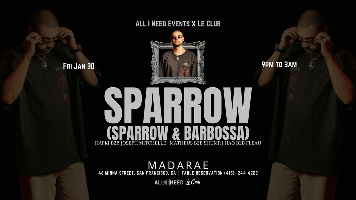All I Need Events & Le Club invites you to a special night with SPARROW [ SPARROW & BARBOSSA ] at MadaRae.