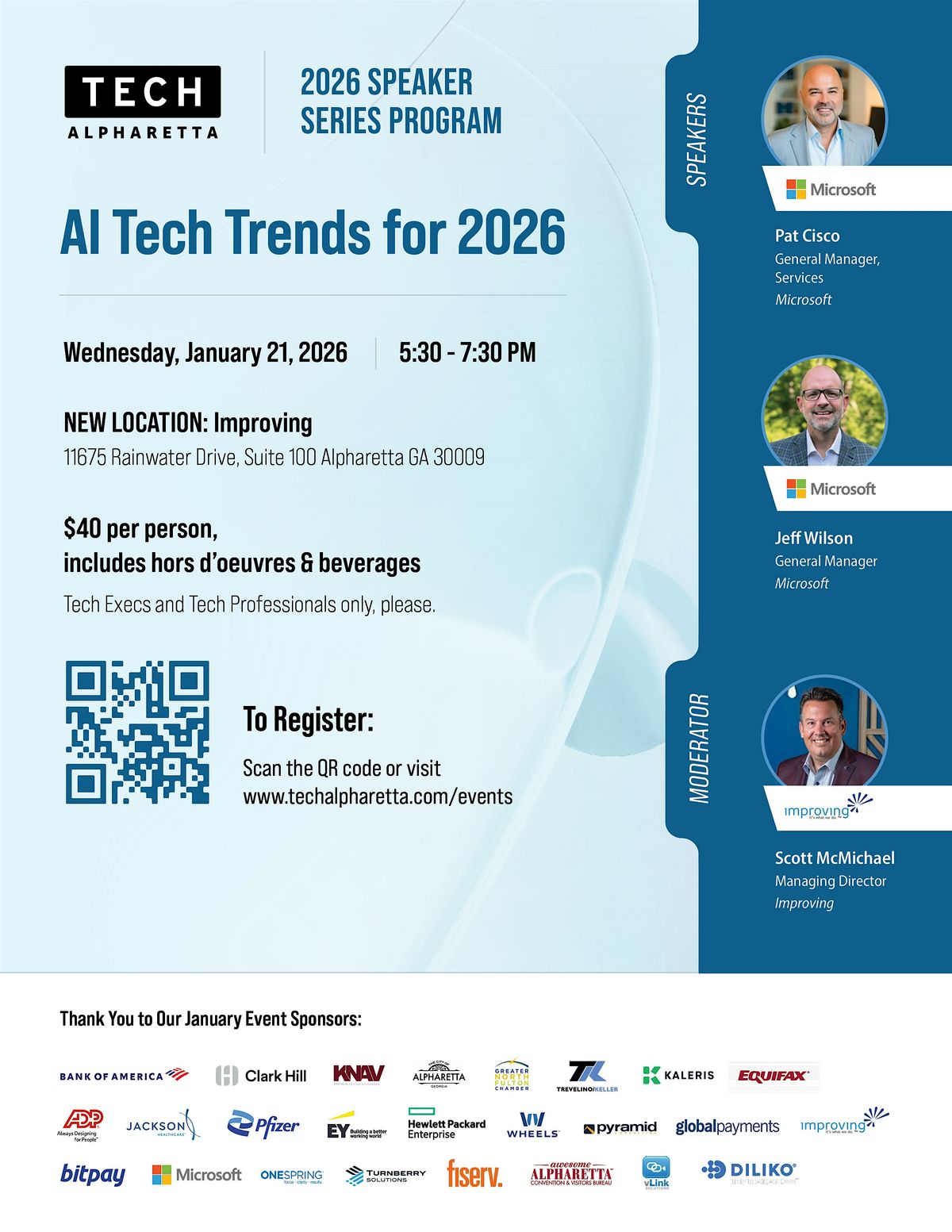 Join us at Improving for an expert panel discussion on 2026 AI Tech Trends. Ticket price includes heavy hors d'oeuvres, wine, beer, water and soft drinks.
